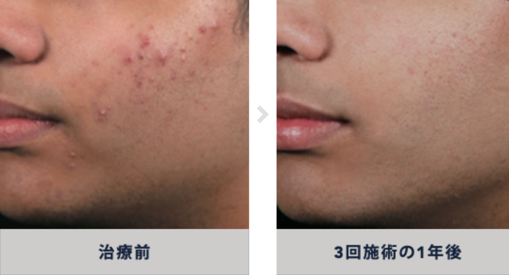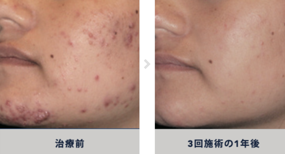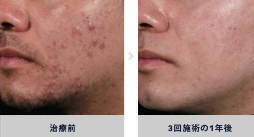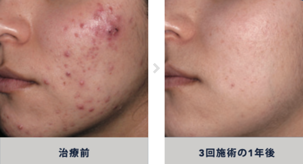 重度のニキビ治療に用いられるイソトレチノインという内服薬は、自費治療として今や簡単にインターネットで手に入る時代になっています。一方副作用としては、皮膚・粘膜の乾燥・肝機能障害・精神的な影響・妊娠前妊娠中の服用は禁忌で、胎児に先天性異常を引き起こす可能性があり服用中は避妊が必要など、服用中は十分な注意が必要です。しかしながら、アビクリアは物理的に皮脂腺細胞を破壊し皮脂腺からの過剰な皮脂の分泌を減らすので、内服薬での副作用を心配する方には安心して、施術を受けていただけます。