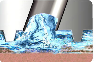 肌の状態・お悩み・肌質に合った、ハイドロピールチップで、有効成分豊富なスキンソリューションを皮膚に圧着させ、水分を補給しながら、水流により皮膚や汚れを浮かし毛穴の奥までクレンジングします。