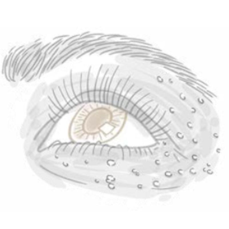 レーザー光から目を守るためにアイシールドを使用します。施術後にテープを貼ります。