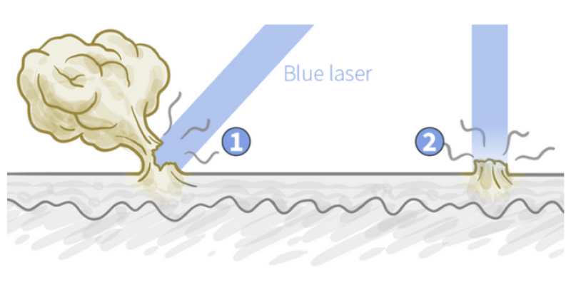 ブルーレーザーには凝固作用があり、照射と同時に表面を塞ぎます。出血が最小限で回復が早いことが特徴です。