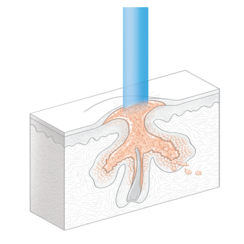 0.1~0.3mmの精度で、健康な皮膚を傷めずに治療可能