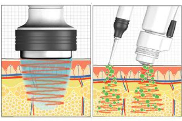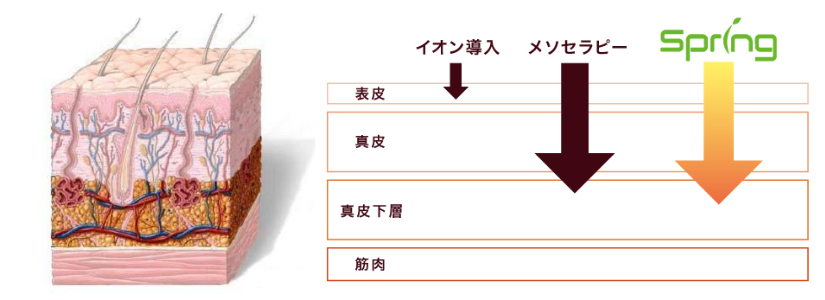 この方法により、今まで注射を用いる以外に皮膚内に導入できなかった物質も、安全に無痛で導入することができます。