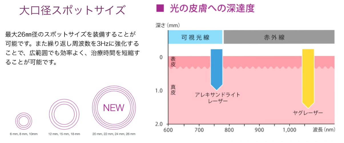 さらに、脱毛効果だけでなく、レーザーの熱作用によってコラーゲンの生成が促され、肌の引き締めやトーンアップなどの美肌効果もある高機能な医療脱毛機器です。