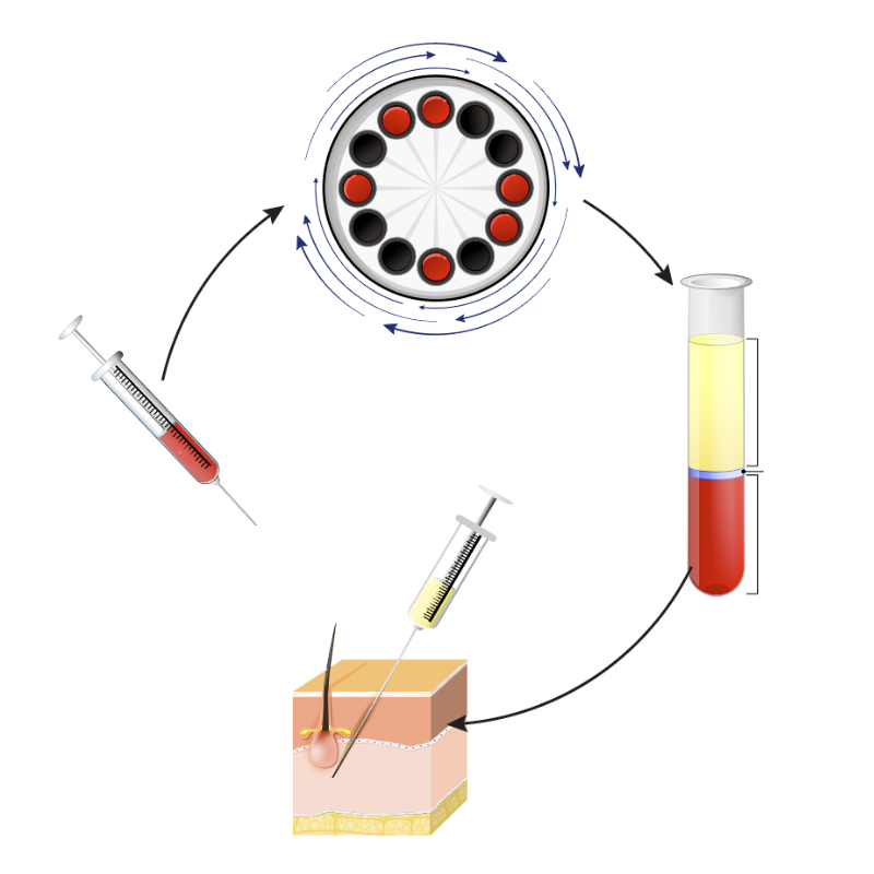 PRP(Platelet Rich Plasma:多血小板血漿)とは、血液中の血漿成分を遠心分離によって調整し、血小板を濃縮した血漿濃縮物です。