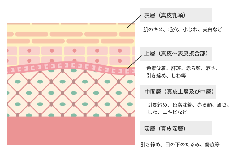 ☑毛穴の引き締め ☑若返り ☑ニキビ痕瘢痕・首のシワ ☑ニキビ跡
